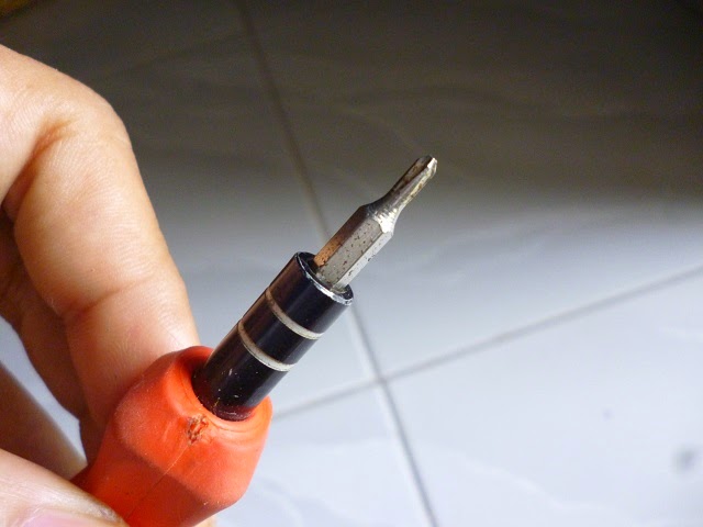 5. Setelah terbuka cukup gunakan jari-jari dan menarik kearah luar untuk melepasnya (lihat gambar), hati-hati dalam menariknya karena cukup rentan patah, jangan terburu-buru.