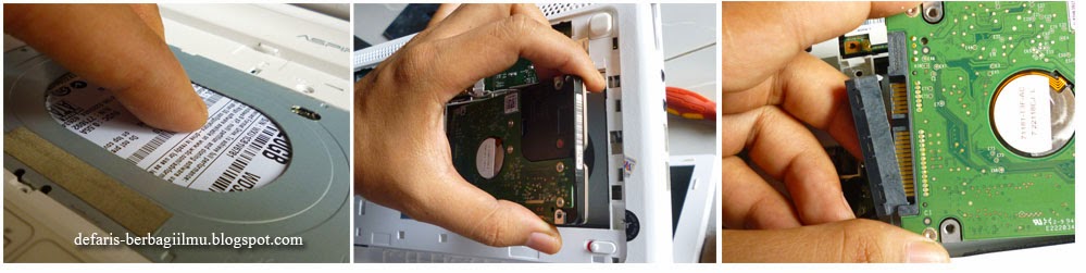 6. langkah terakhir adalah melepas hardisk. Caranya dengan mendorong hardisk keluar, kemudian angkat hardisknya, terakhir melepas kabel data yang mengunci hardisk. Dan hardiskpun siap dipasang dengan yang baru