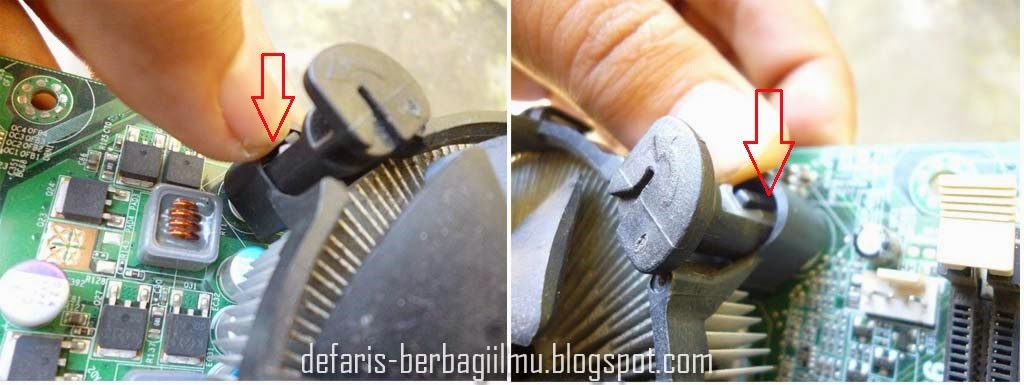 6. Apabila semua telah masuk dengan baik sekarang tinggal menguncinya ke motherboard dengan menekan pengunci kebawah sampai berbunyi krik. Lakukan hal yang sama pada tiga pengunci HSF.