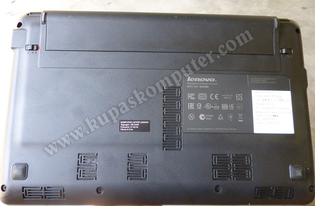 Pada bagian bawah notebook Lenovo E10-30 ini, terlihat beberapa tempat untuk membuang panas. Selain dibawah, seperti kebanyakan notebook lainnya, dibagian sisi samping pun lenovo memberikan tempat untuk pembuangan panas.