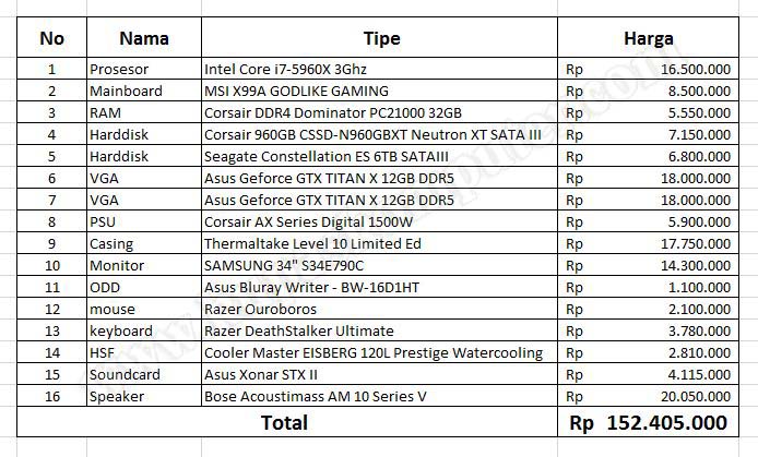 Berikut spesifikasi komputer dengan harga lebih dari 150 juta rupiah.
