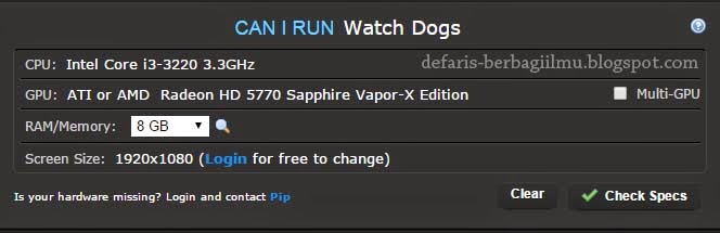 Sekarang saya mau ambil contoh spesifikasi komputer dibawah ini akankah sanggup untuk menjalankan game Watch dog. Spesifikasi nya kurang lebih sebagai berikut :